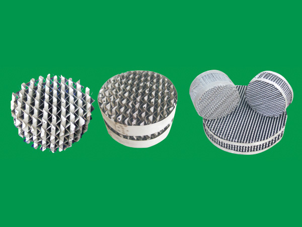 陶瓷規整填料與散堆填料相比具有效率高,降壓低,處理量大,持液量小,放大效應不明顯,操作彈性大等一系列優點。它由許多具有相同幾何形狀的填料單元體構成。陶瓷規整波紋